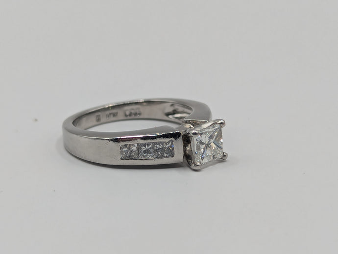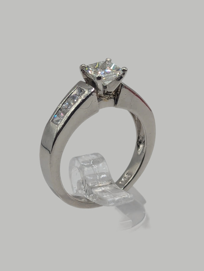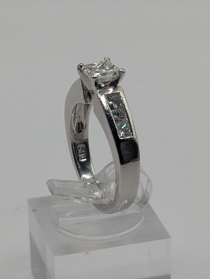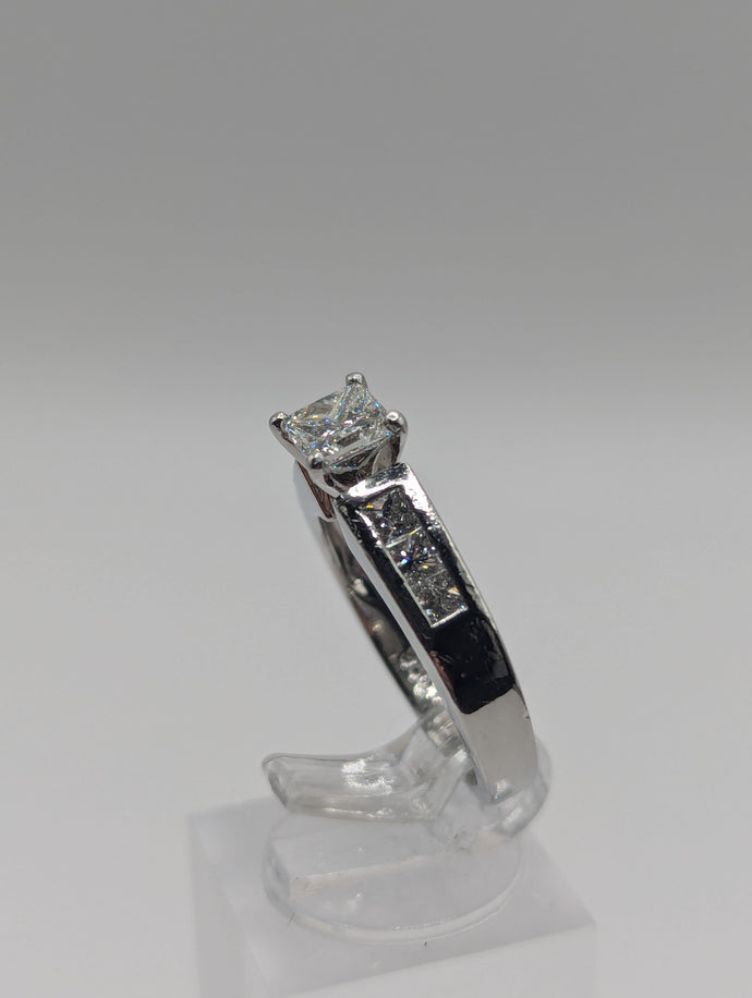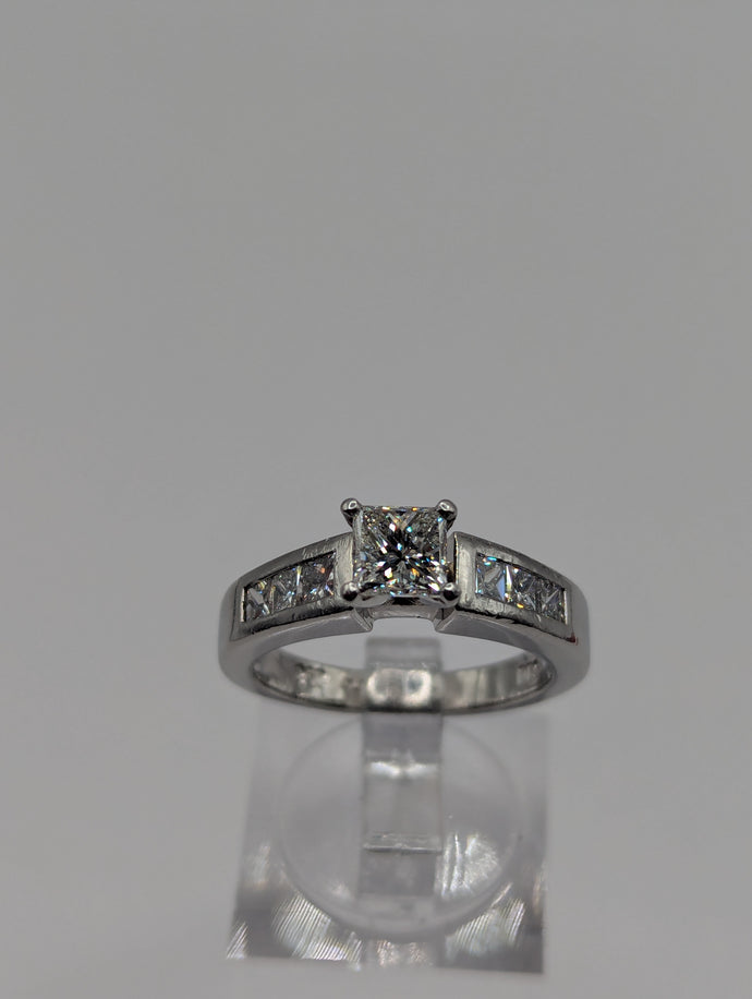 - Center Stone: Approx. 0.75 carat natural princess cut diamond, VS1, H Color