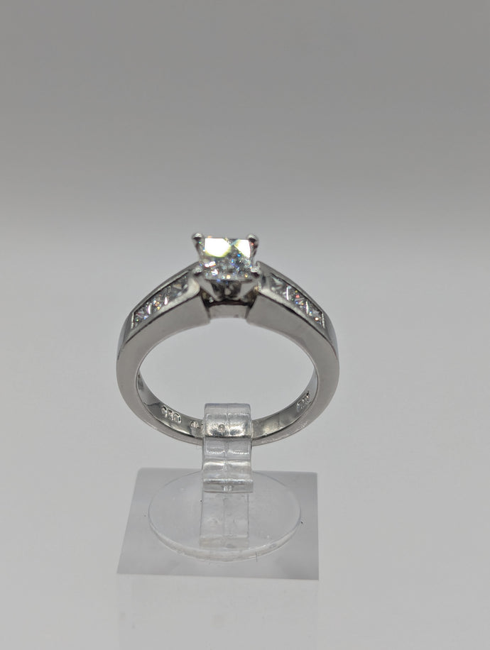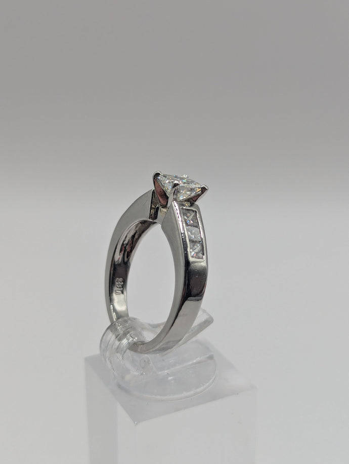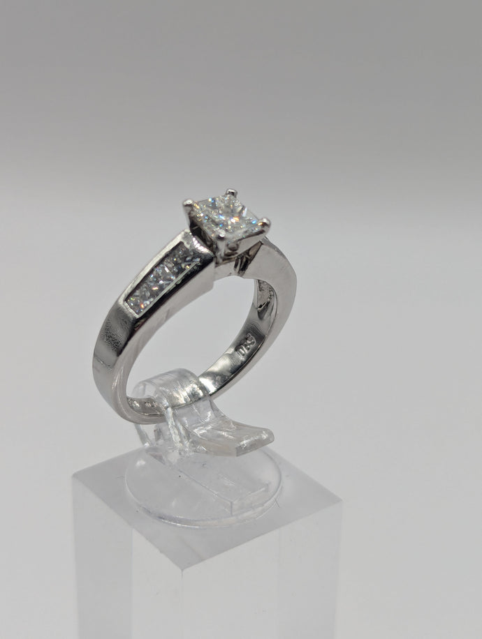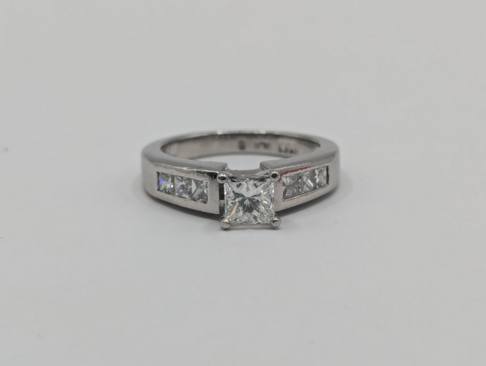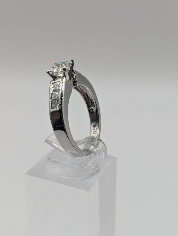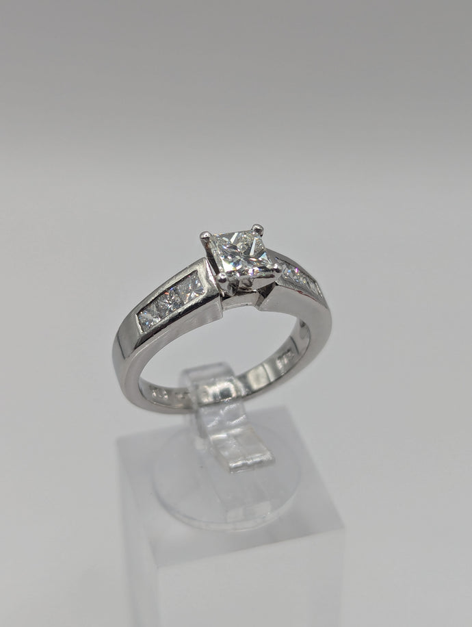 - Center Stone: Approx. 0.75 carat natural princess cut diamond, VS1, H Color